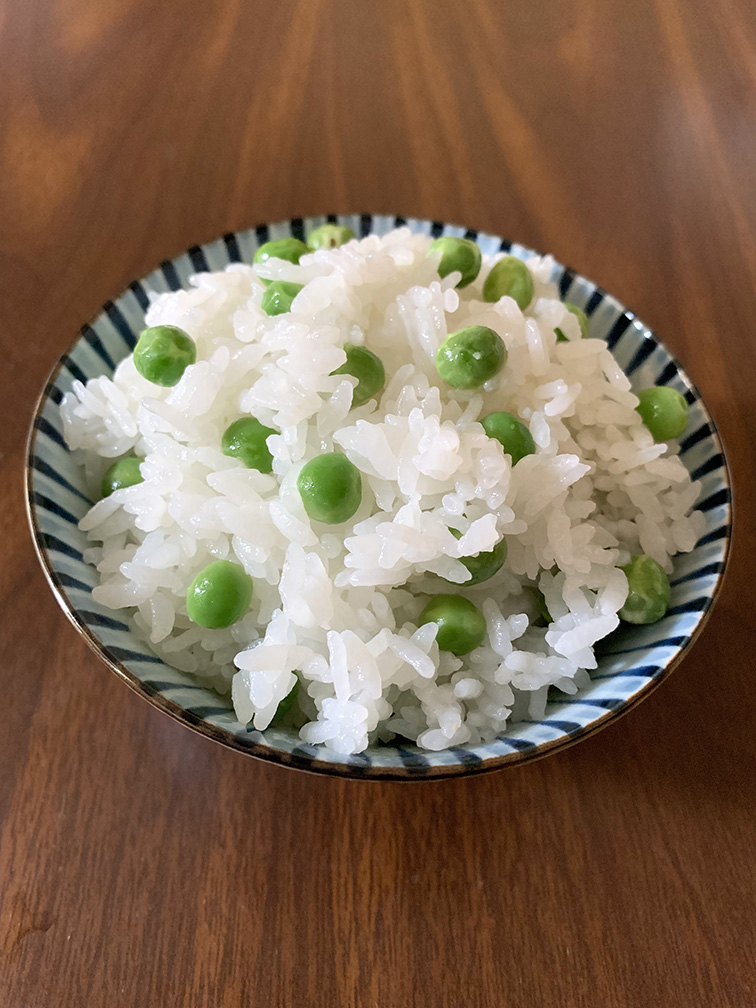 うすいえんどうが出回る時期になると、仕出しのお弁当に豆ごはんが入っていました。豆のグリーンがとても綺麗で、好きなごはんの一つです。